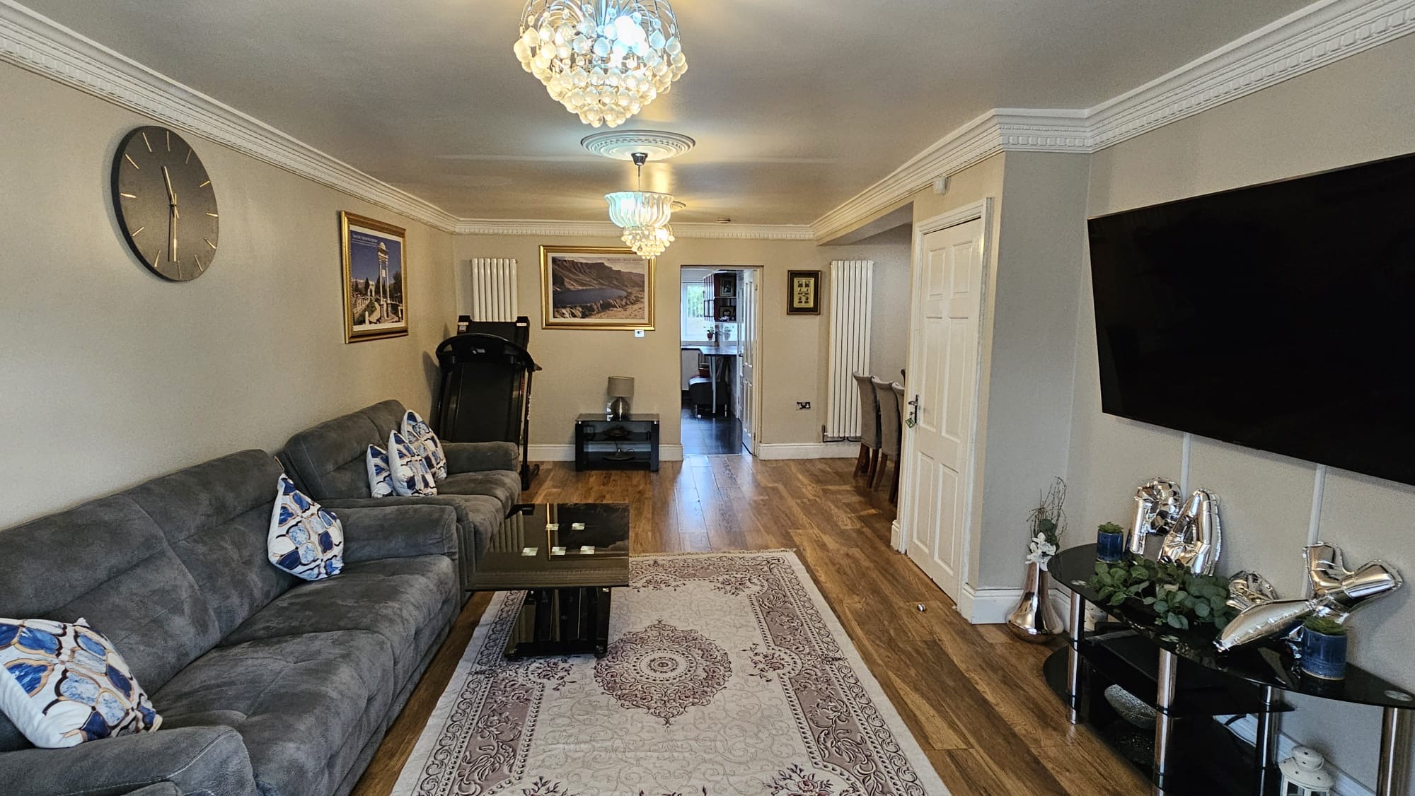 Extended Lounge/Dining Area: Size 8.23m x 3.97m (27’01” x 13’05”). Power Point. Double Glazed Bay Window overlooking Front. Laminated Floor. Gives access to Dining area, Store and Kitchen.