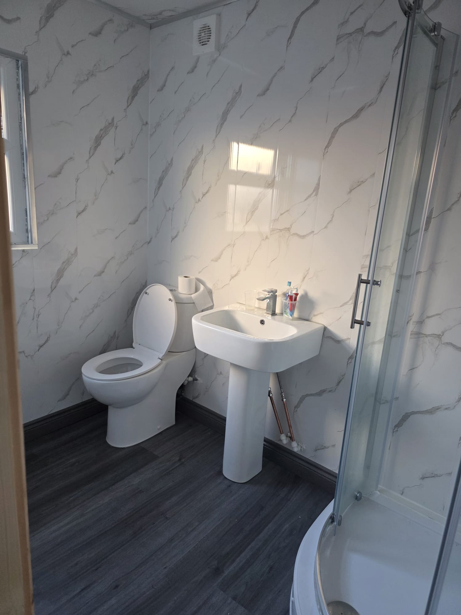 Shower Room: Having Shower Cubicle. Shower Unit. W.C. Wash Basin. Central Heating Radiator.