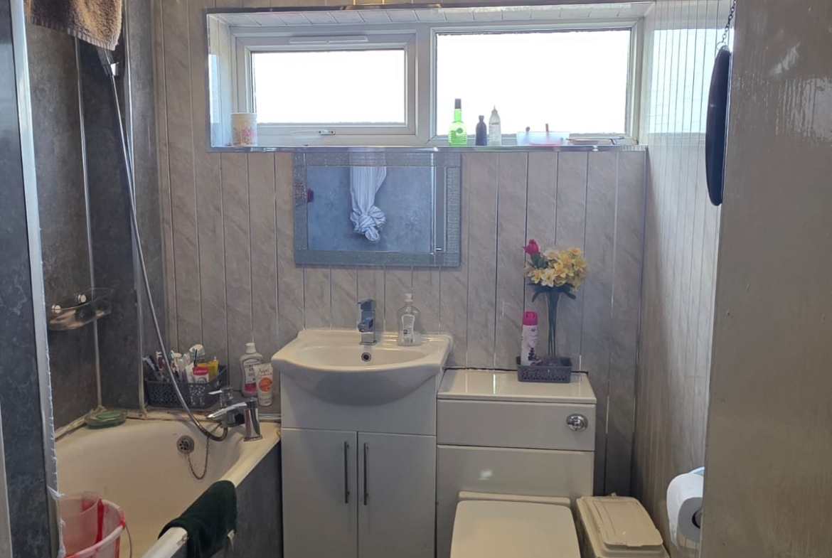 Bathroom: Double Glazed Window overlooking Front. Having Panelled Bath. Inset Wash Basin. W.C. Central Heating Radiator.