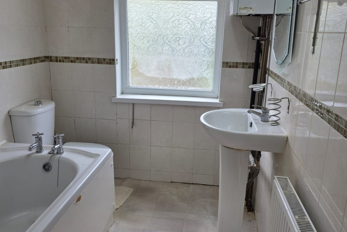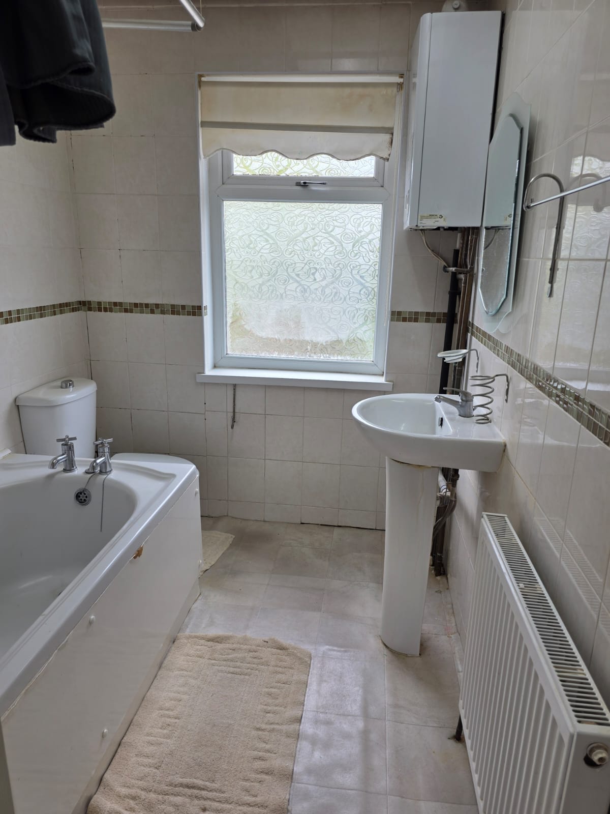 Bathroom (Tiled): Double Glazed Window overlooking Rear. Having Panelled Bath. Pedestal Wash basin. W.C. Central Heating Radiator.
