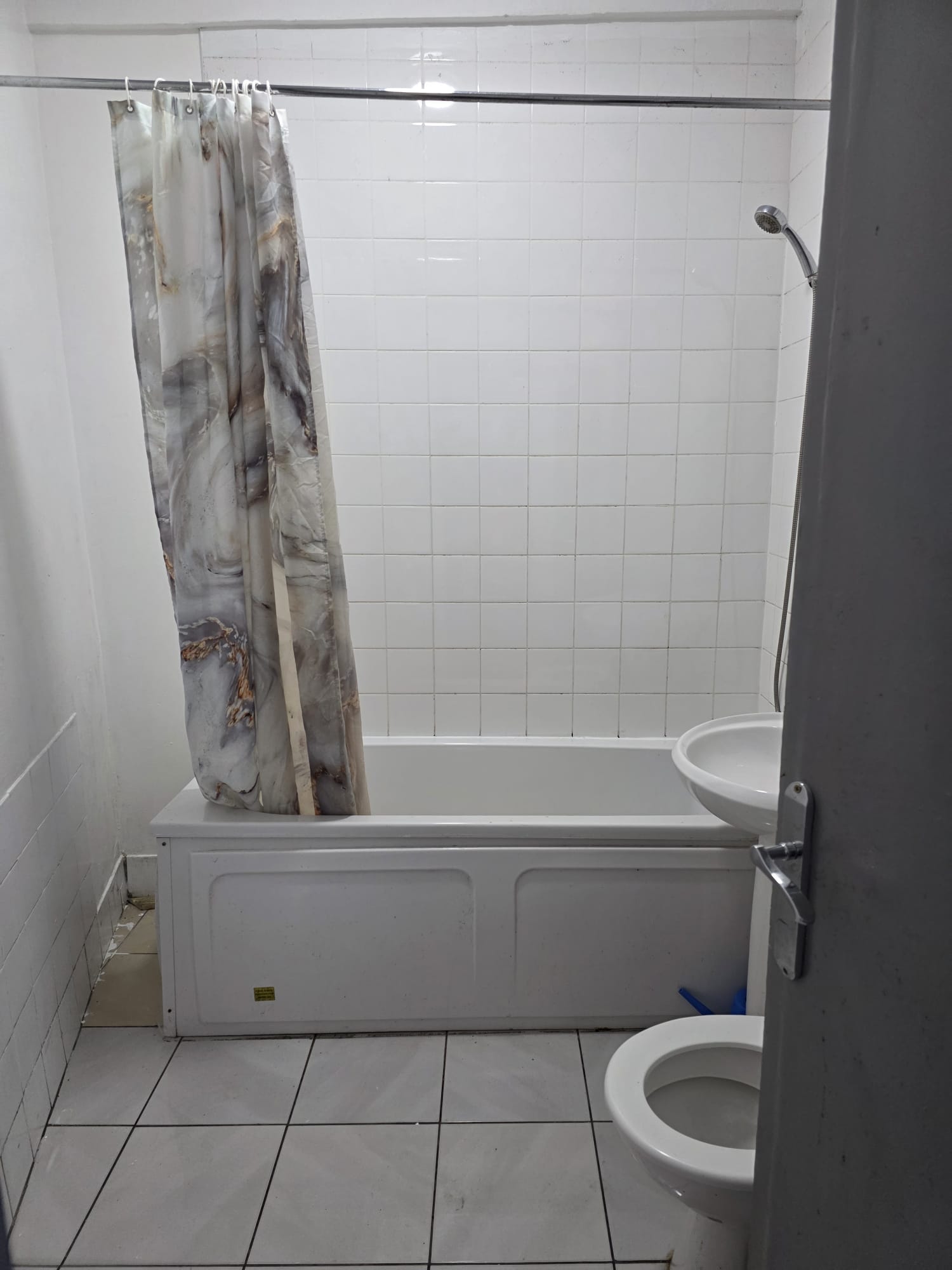Bathroom: Partly Tiled. Having Bath, Pedestal Wash Basin. W.C. Ventilation Fan. Shower Cubicle.