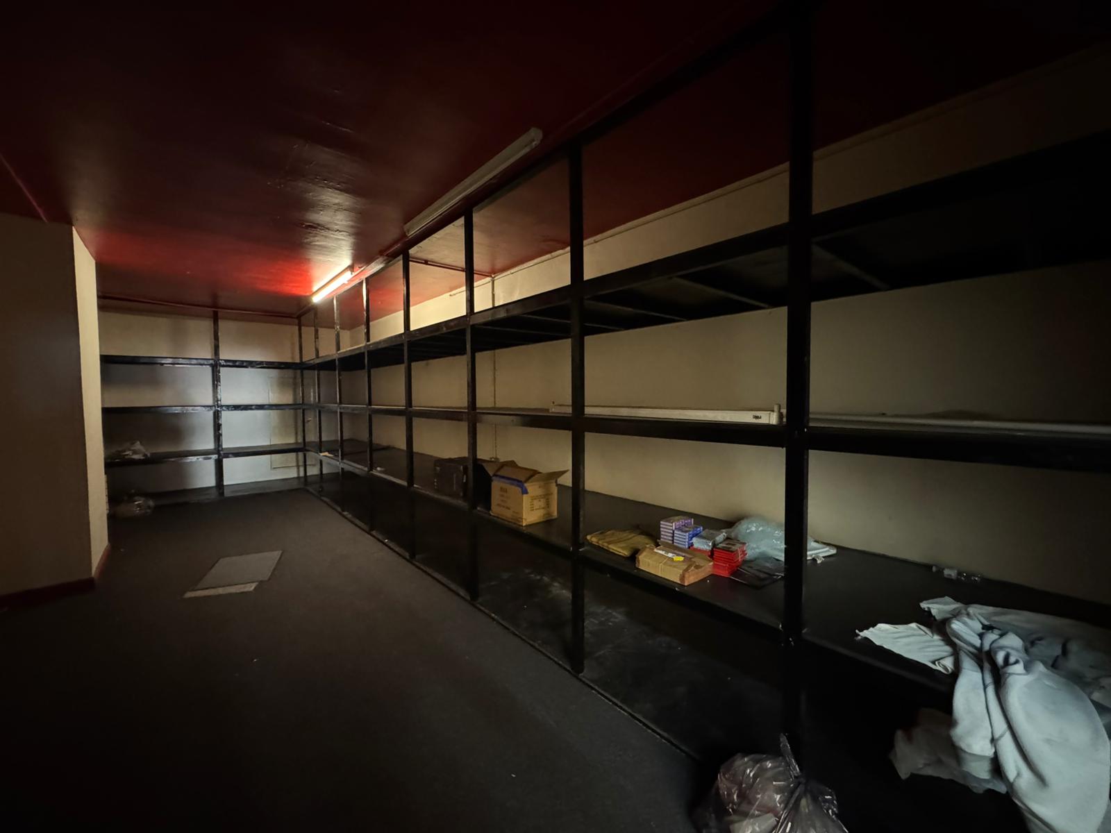 Store 2: Size 14.00m x 5.05m (45’95” x 16’59”). Having Power Point. Metal Storage. Gives access to rear.