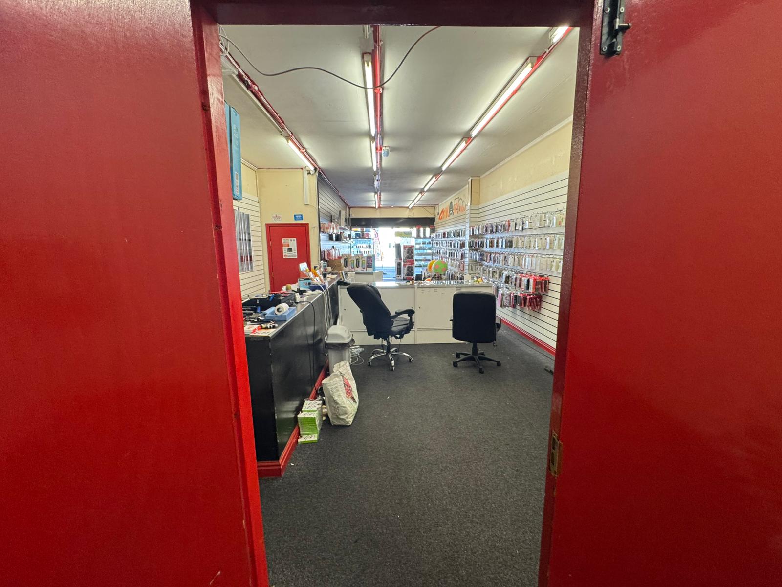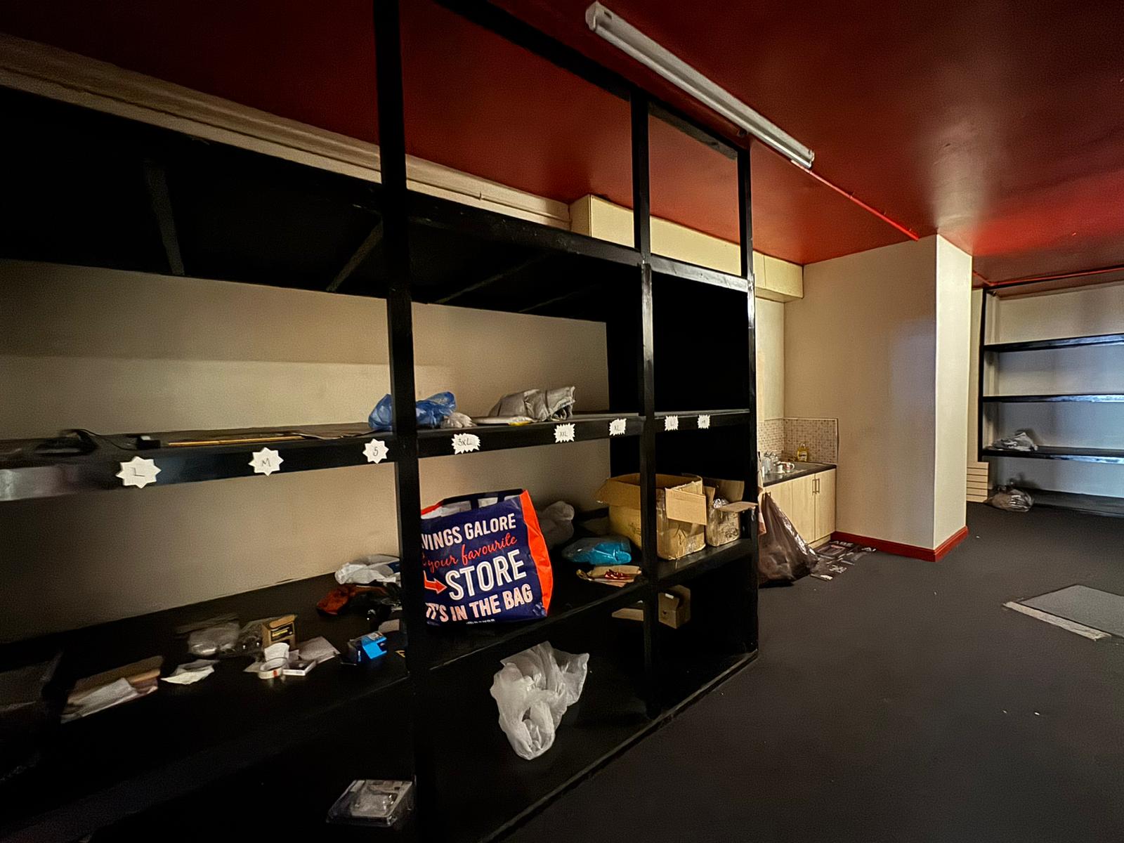 Shop Area: Size 13.41m x 5.05m (44’02” x 16’59”). Having Power Point. Counter. Fitted Shelves. Gives access to Rear Office.