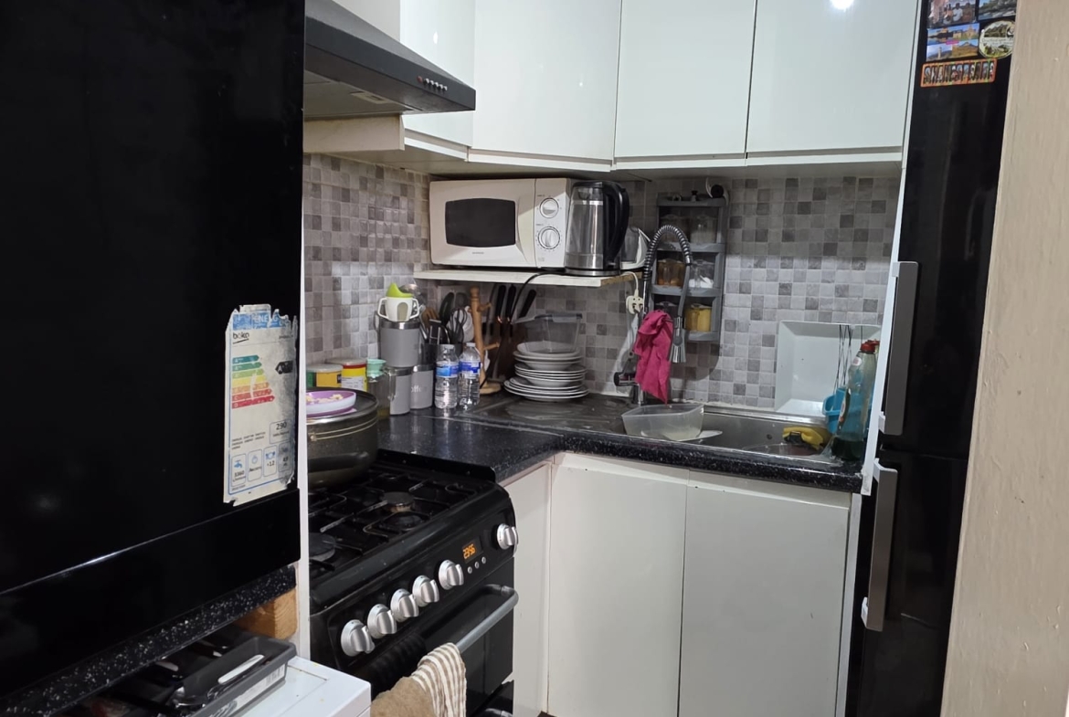 Kitchen (Partly Tiled): Size 2.19m x 1.92m (7’18” x 6’29”). Having Power Point. Double Glazed window overlooking side. A range of Wall and Floor units. Work surface. Fitted Gas Cooker. Sink unit. Plumbed for Washing Machine. Central Heating Boiler.